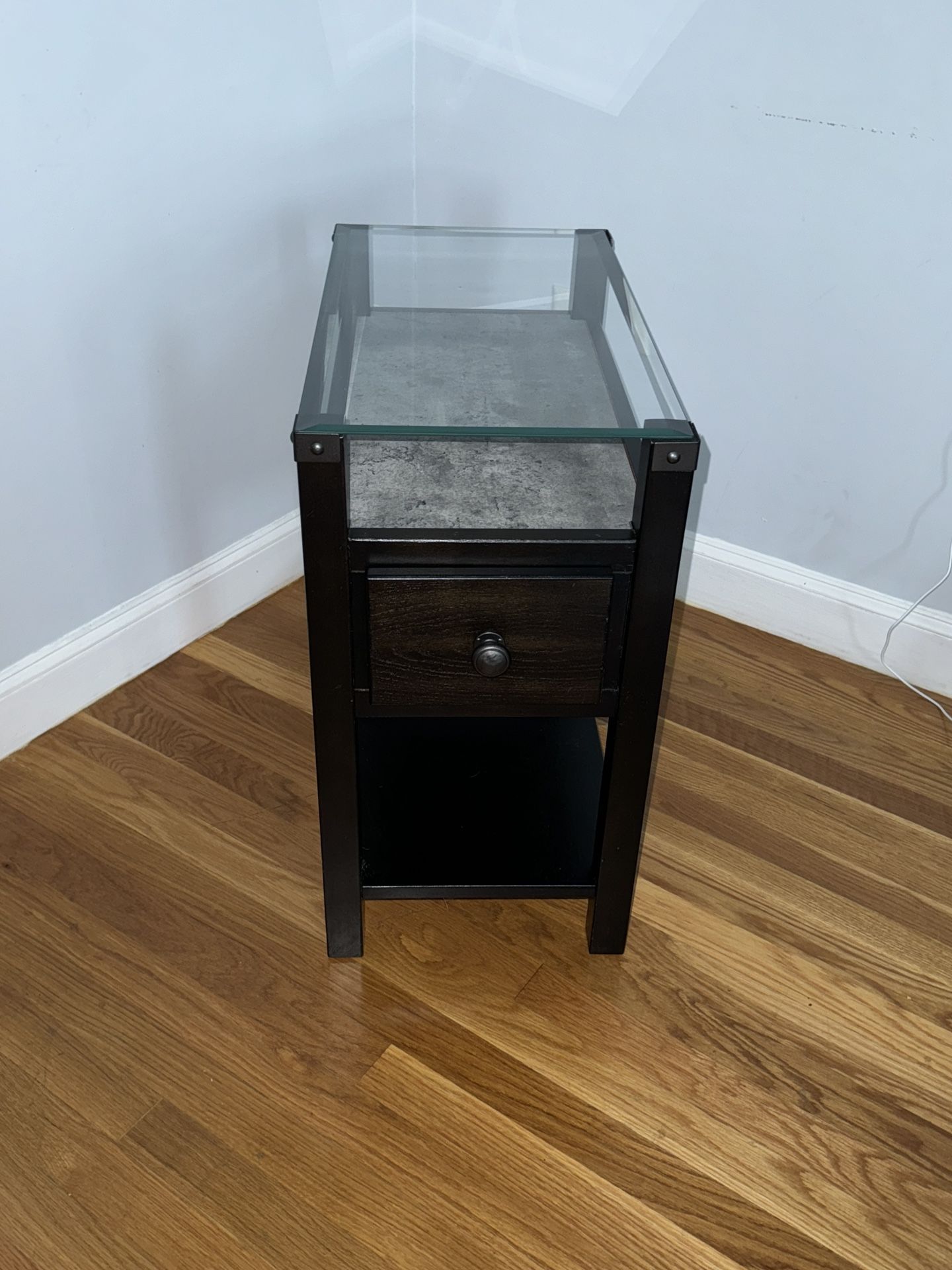 Great condition Ashley end table bought from Jordan’s furniture. Roughly 23x13x24 inches