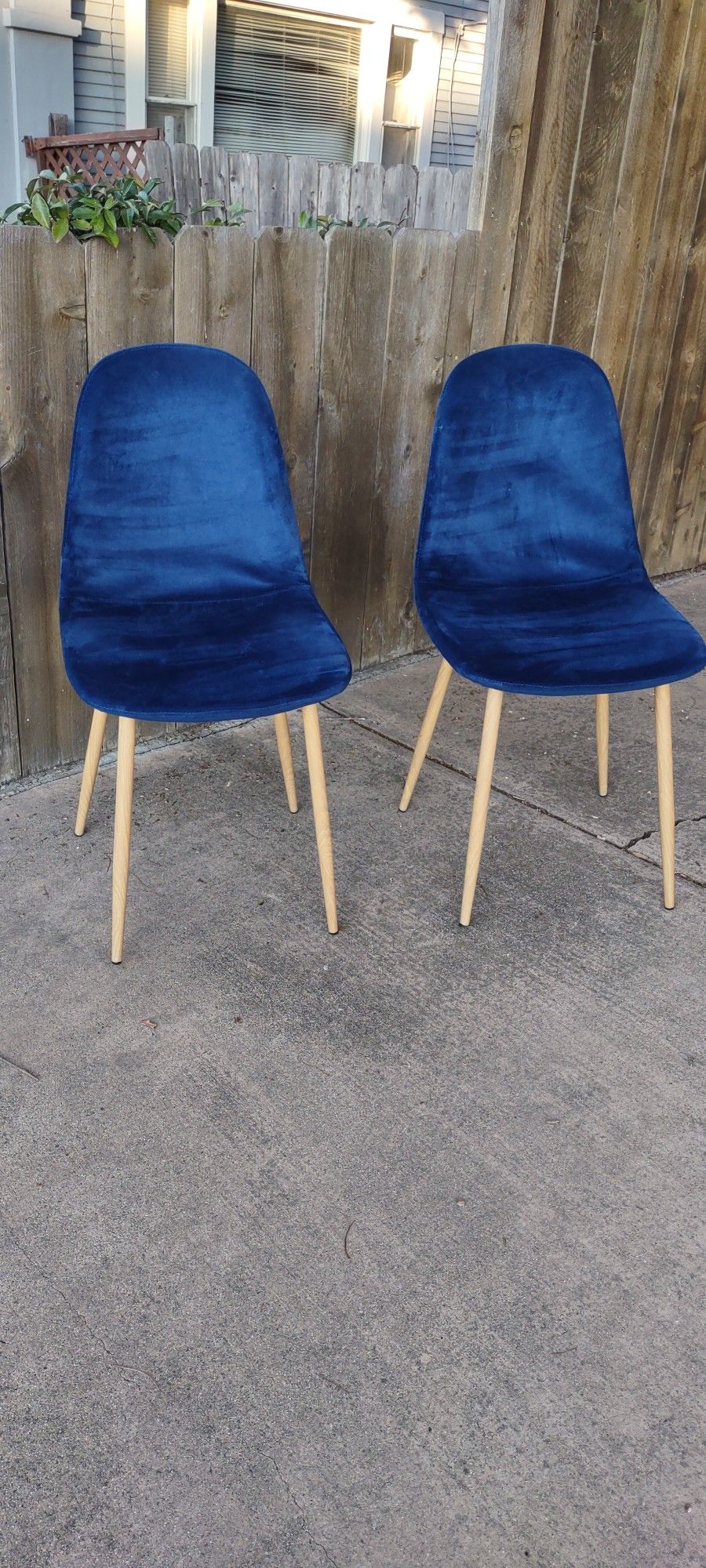 Elegant blue suede velvet chairs with sturdy legs. Very good condition Light cleaning needed