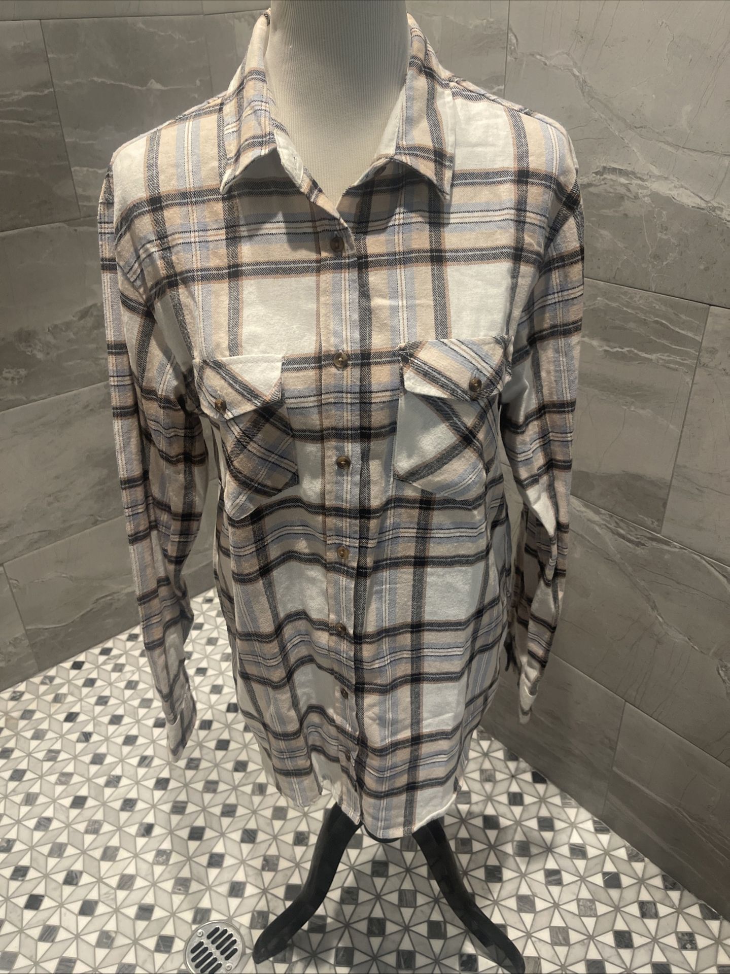 RSQ Womens Button Up Shirt 100% Cotton, Plaid Flannel, Blue & Biege, Size M NEW Pickup in Yorba Linda