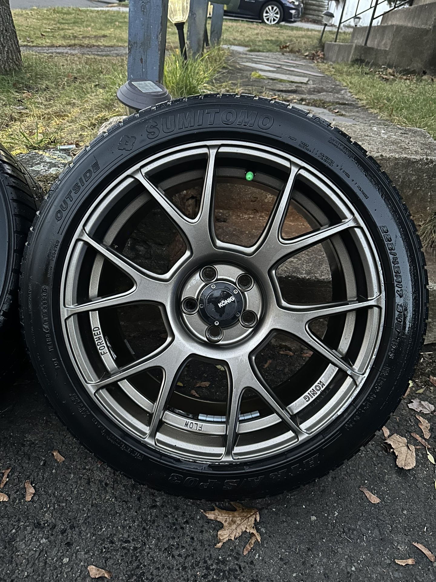 Konig Ampliform 17x8 wheels 5x100mm log pattern. Tires size on all 4 are 225/45/17 Ask 850$ firm