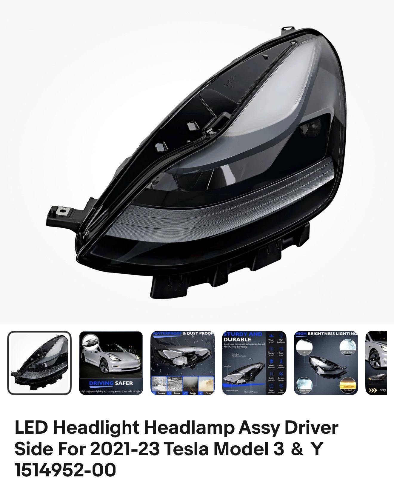 LED Headlight Headlamp Tesla Y & 3 Driver Side