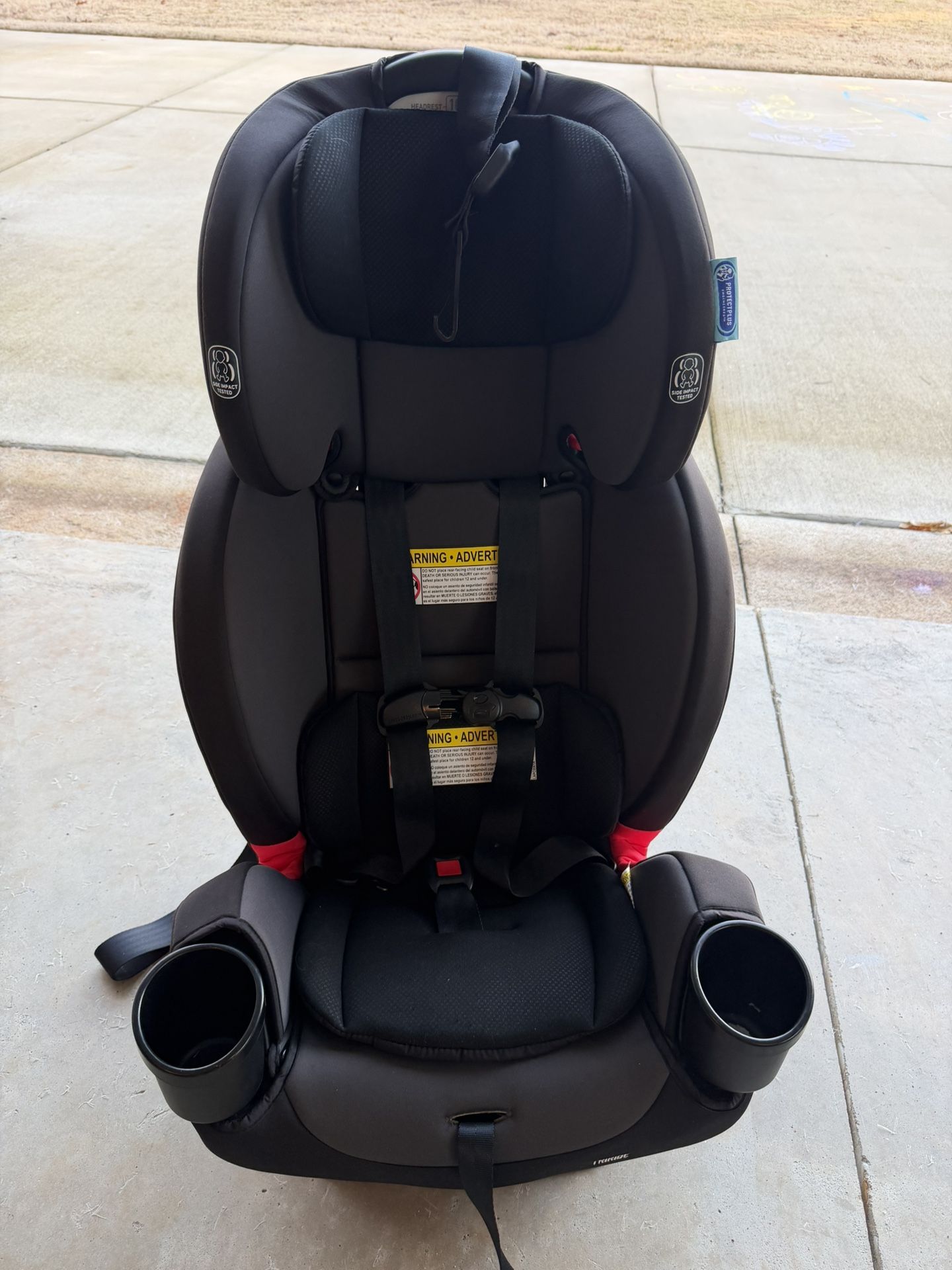 Removable washable cover, Forward or rear facing, Adjustable headrest, Cup holder