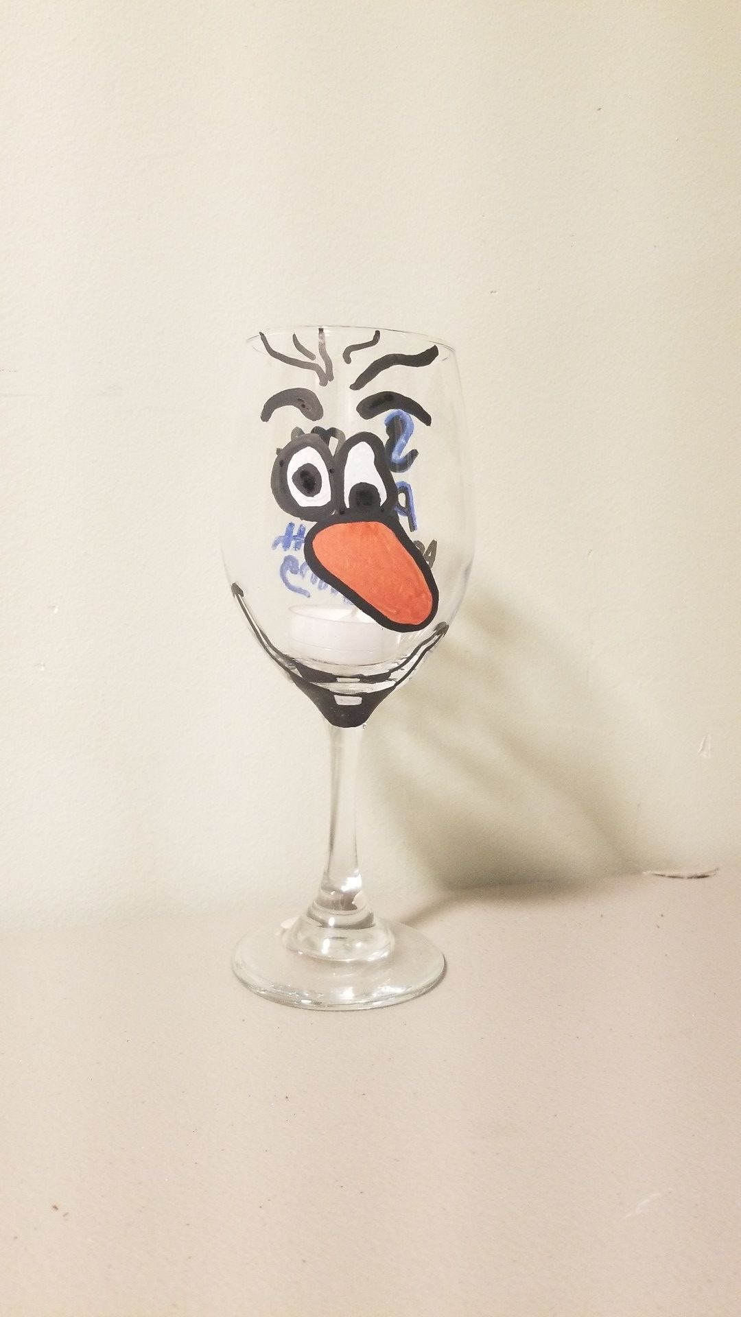 Holiday Wine Glass (Olaf) with tea light candle inside.
