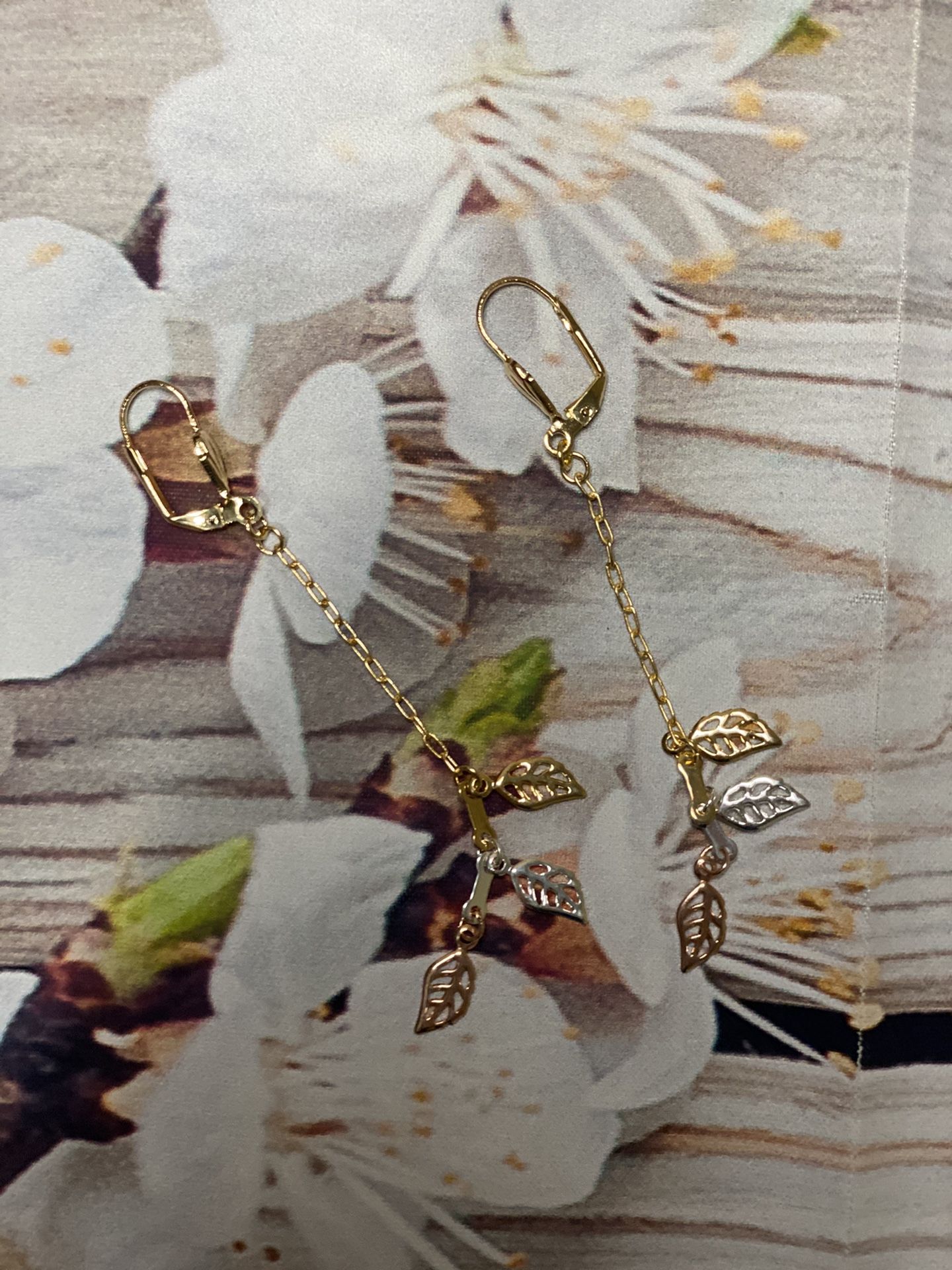Brand new Leaves Earrings Nickel Free Hypoallergenic 14 K Italian Three Tone Plating