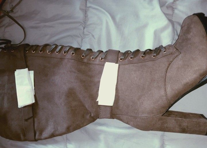 Dark Olive heeled thigh high boots*New* Never worn (Wide calf) size 10