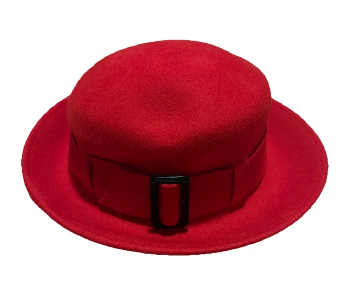 Nine West Womens Bucket Hat Red Black Buckle 100% Wool