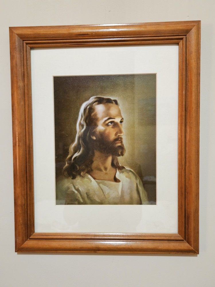Beautiful head portrait painting of Jesus Christ. In custom frame.