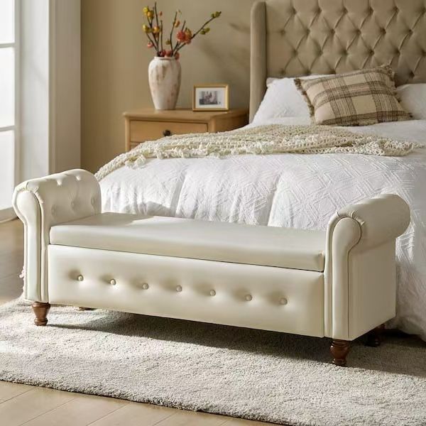 Sandra Ivory 63 in. W Upholstered Storage Bedroom Bench with Solid Wood Legs(ZBEXH0373-IVY)