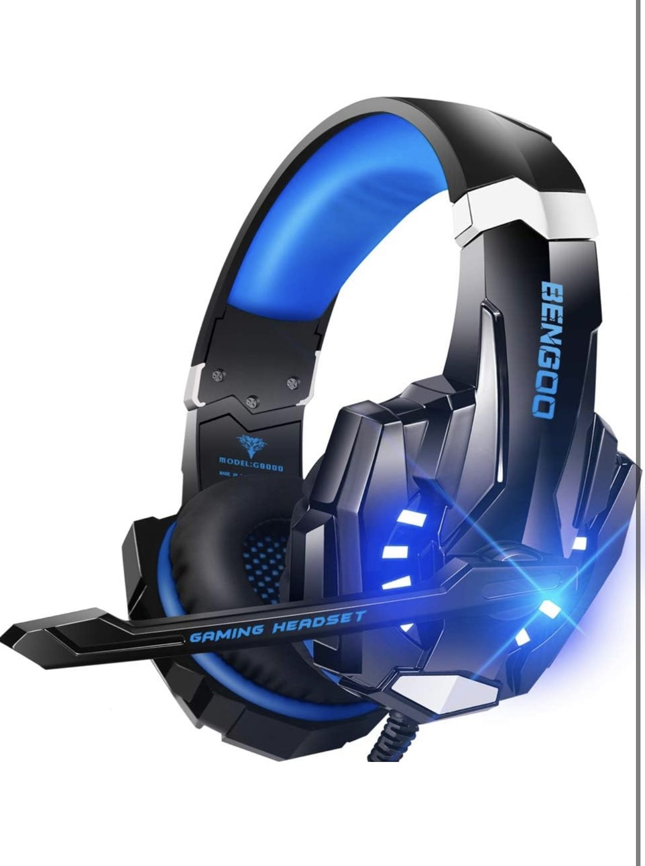 Brand new and never used G9000 Stereo Gaming Headset for PS4 PC Xbox One PS5 Controller, Noise Cancelling Over Ear Headphones with Mic, LED Light, 7.1 Surround Sound, Soft Memory Earmuffs for Nintendo Xbox Series X|S Color Blue Ear Placement Over Ear Form Factor Over Ear Noise Control Sound Isolation Headphones Jack 3.5 mm Jack 【Multi-Platform Compatible】Support PlayStation 4, PlayStation 5, Xbox, Xbox Series X|S, Xbox One, PC, Nintendo 3DS, Laptop, PSP, Tablet, iPad, Computer, Mobile Phone. Please note you need an extra Microsoft Adapter (Not Included) when connect with an old version Xbox One controller. 【7.1 Surround Sound】Clear sound operating strong brass, splendid ambient noise isolation and high precision 40mm magnetic neodymium driver, acoustic positioning precision enhance the sensitivity of the speaker unit, bringing you vivid sound field, sound clarity, shock feeling sound.