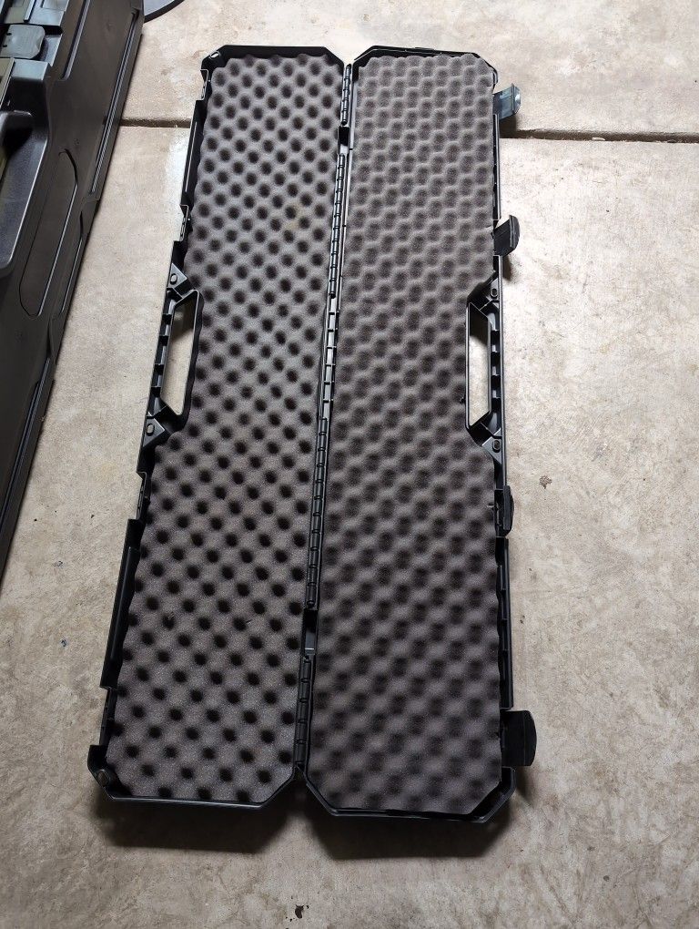 Universal Fit: Unlike custom-cut foam, convoluted foam is highly universal; the wavy surface compresses around items of various shapes, such as different rifles or tools, to hold them securely without needing custom cutouts. Shock Absorption: It is typically made from soft, open-cell polyurethane (PU), which provides excellent cushioning and shock absorption to protect sensitive equipment or optics from impacts during transport. Airflow: The "peaks and valleys" design can provide slightly better airflow than flat foam, which may help prevent immediate moisture buildup. Material: Blow-molded plastic, which is lightweight and impact-resistant. Security: These cases typically feature holes near the handles for padlocks to comply with travel or storage safety regulations. Interior: Most of these cases contain "convoluted" (eggshell) foam to hold items securely in place and prevent shifting. Set of 4 will sell individually as well if the offer is good. Inside of the case is 49.5"X9.5"