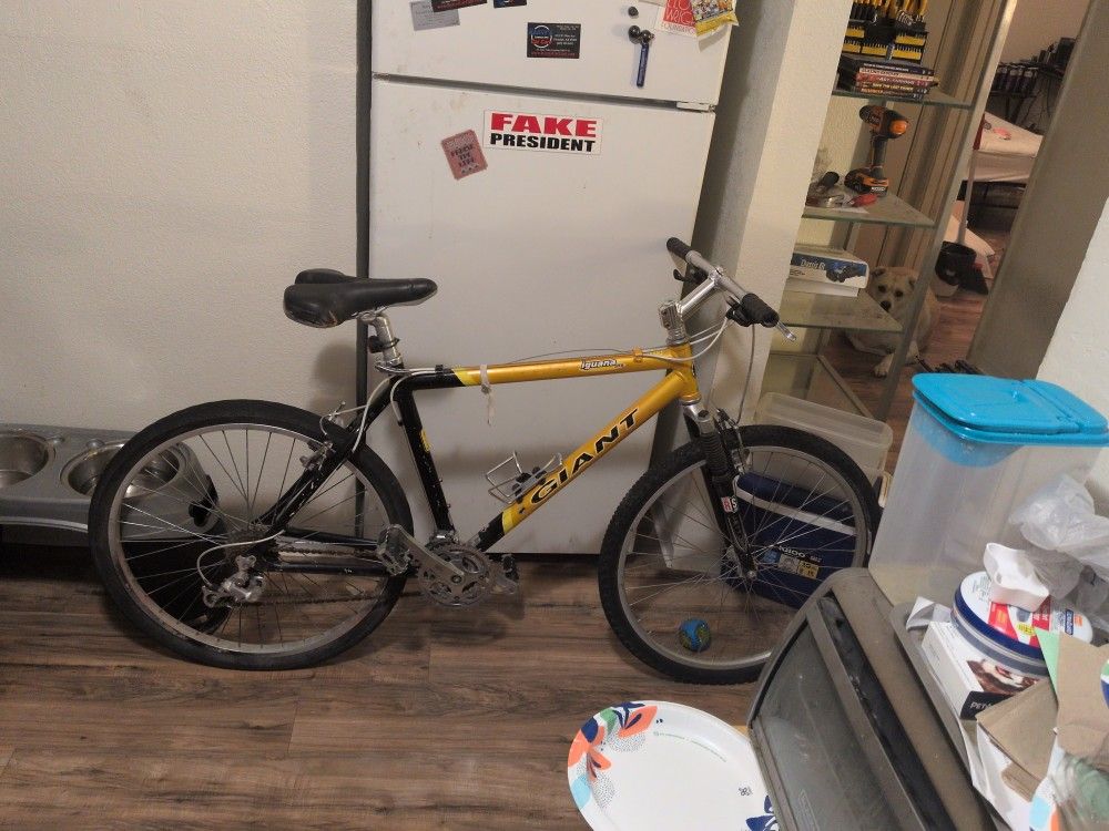 This is a Iguana SE Giant 19 speed Bike. There is some wear and tear on the bike but it's a decent bike just needs to be cleaned up a little and it needs a new tube and tire also needs new rear brakes or you can fix them yourself.