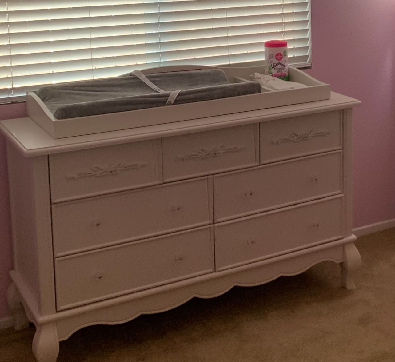 Just removed- Dresser not included Only topper, changing pad and 3 changing table pad covers included (pink, grey and dotted print) Pick-up in Menifee