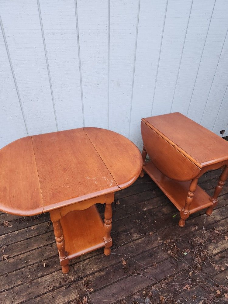 2 vintage 40s oval folding end coffee tables solid wood tone 120 for both 75 ea solid but scratched