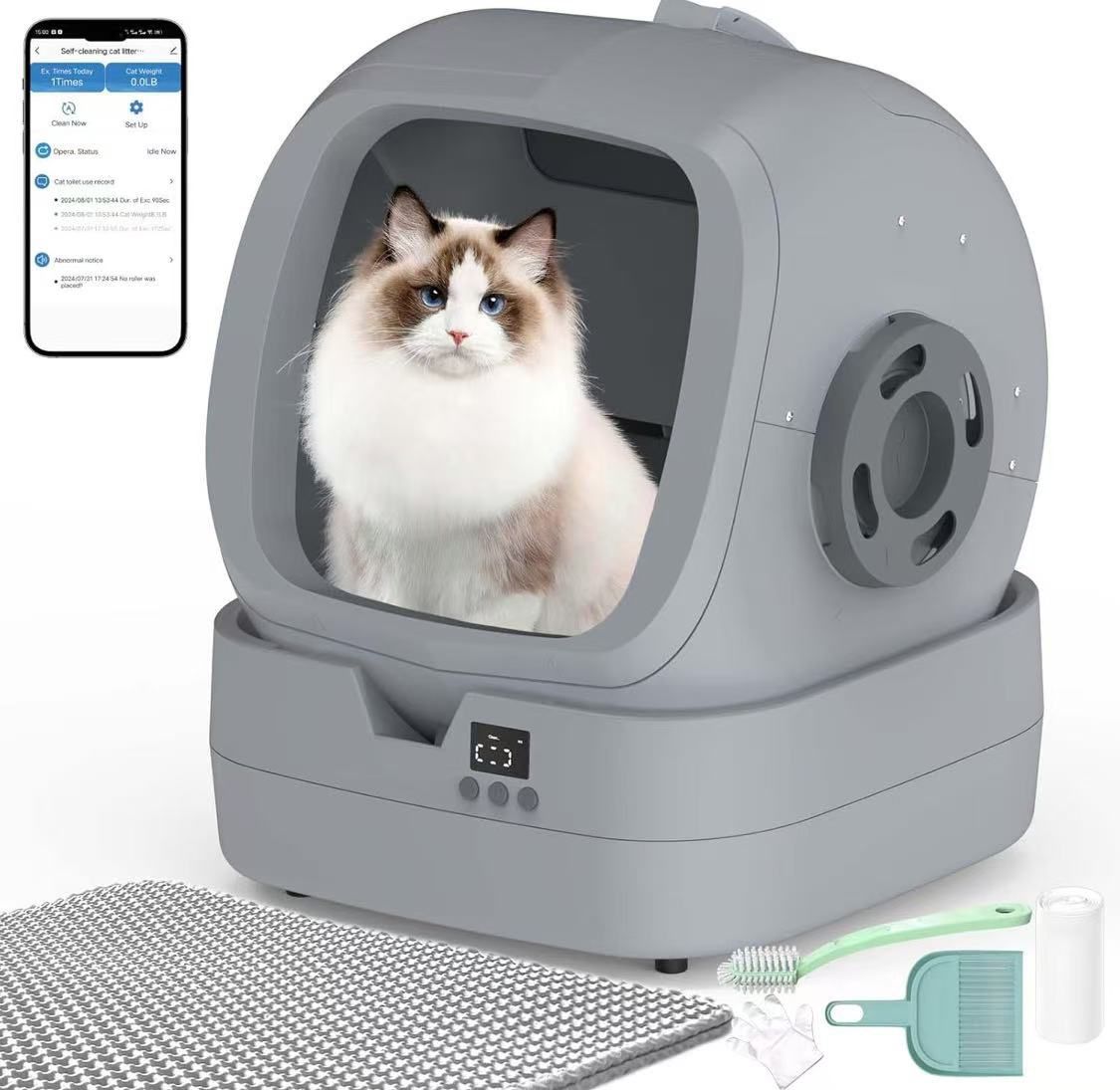 Automatic Cat Litter Box Self-Cleaning - APP Control and Weight Monitoring - 85L Ultra Quiet, White & Grey