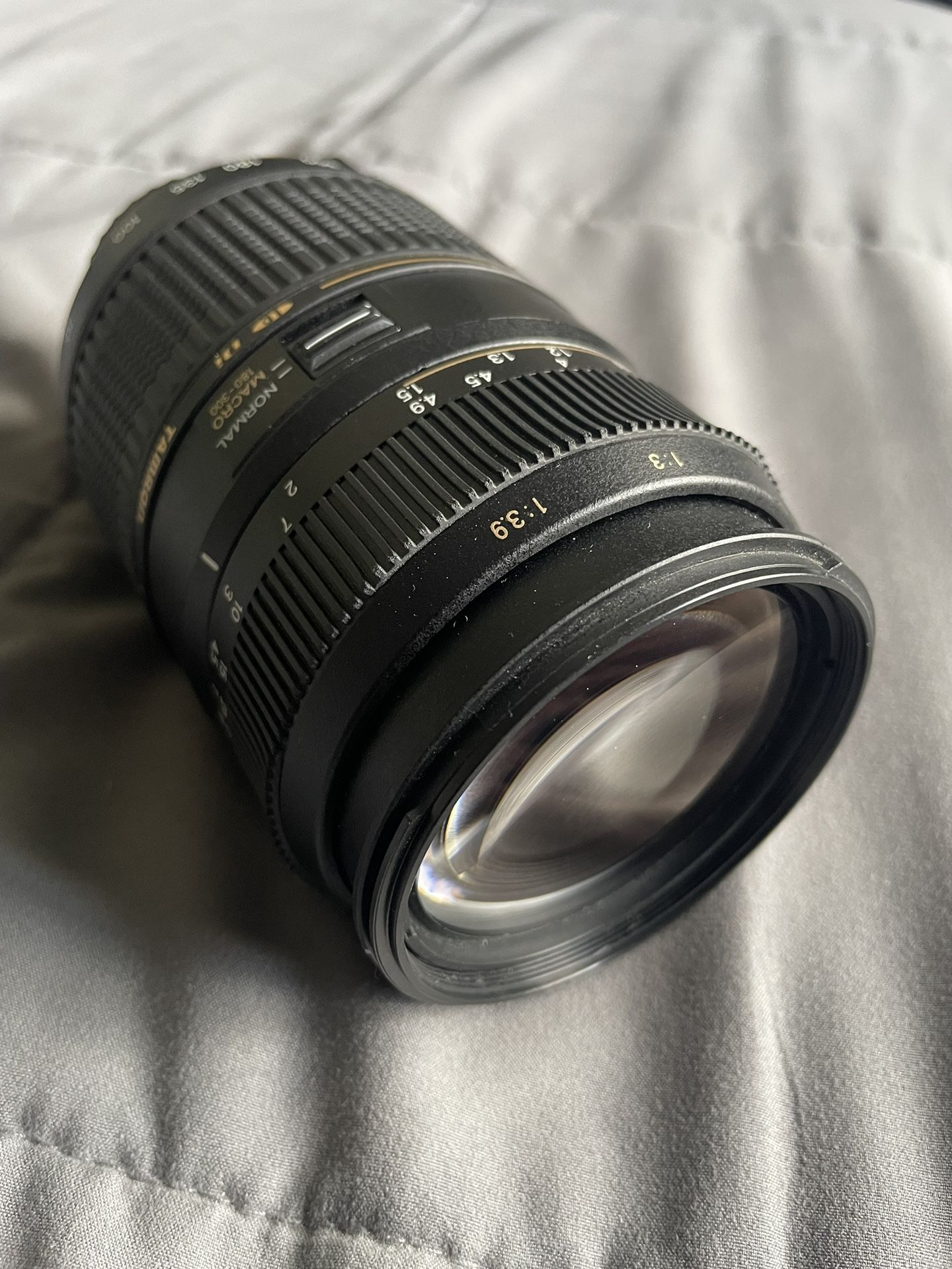 Tamaron lens. 70-300 mm 1:4-5.6 Tele-Macro (1:2) Normal wear and tear. No lens cap. Macro function: 180-300 AF Di motorized lens.