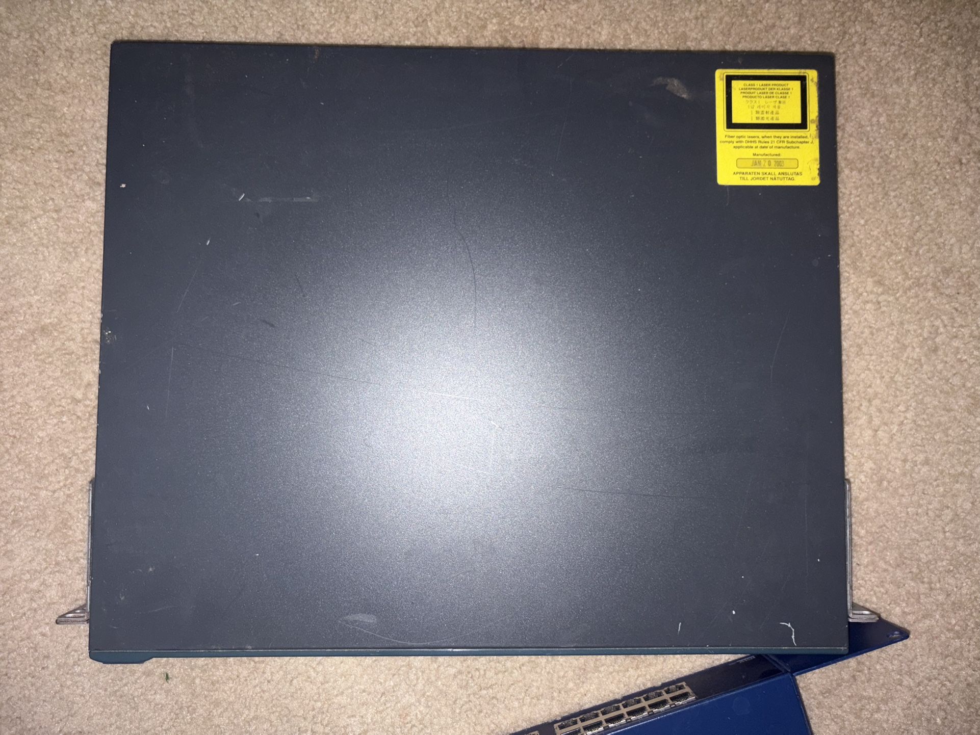 Functional Cisco Catalyst WS-C3550-24-SMI switch. Has some scratches and scuffs on the surface. Manufactured January 20, 2003. The Cisco Catalyst WS-C3550-24-SMI is a 24-port managed Fast Ethernet switch designed for enterprise and branch office, featuring 10/100 Mbps connectivity, 2 GBIC-based Gigabit Ethernet uplinks, and Standard Multilayer Image (SMI) software for basic Layer 3 routing. Key Features & Technical Specs: Ports: 24 x 10/100 RJ-45 ports and 2 x GBIC-based Gigabit Ethernet ports. Performance: 32 Gbps switching fabric, 16 Gbps forwarding bandwidth. Layer 3 Capabilities: Supports routing protocols and VLANs with Standard Multilayer Image (SMI). Management: Supported by Cisco Cluster Management Suite (CMS) software for web-based configuration. Form Factor: 1U rack-mountable. Memory: 8000-entry MAC address table. Power: Supports optional external redundant power system.