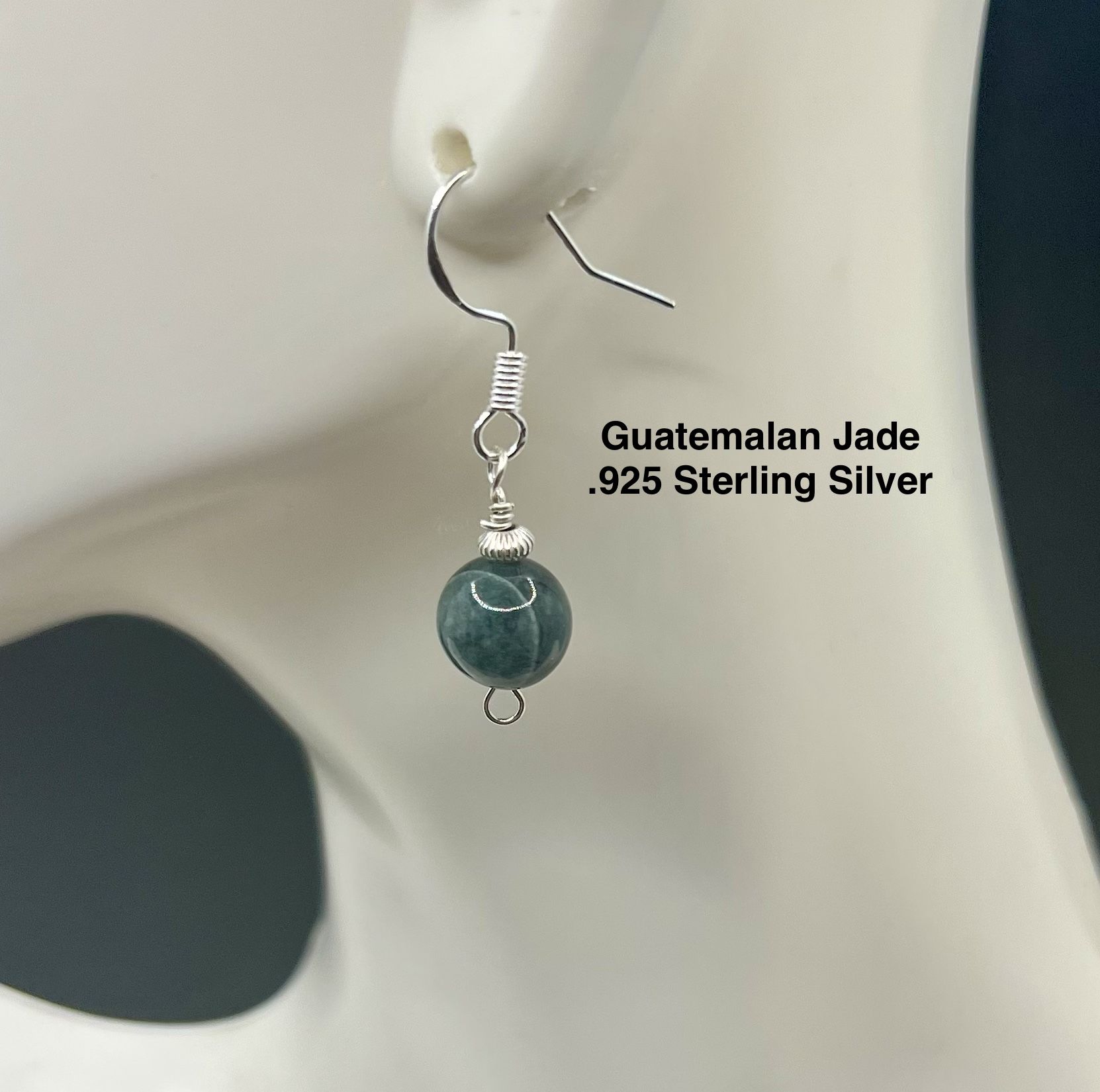 Guatemalan Genuine Green Jade .925 Sterling Silver Earrings RARE