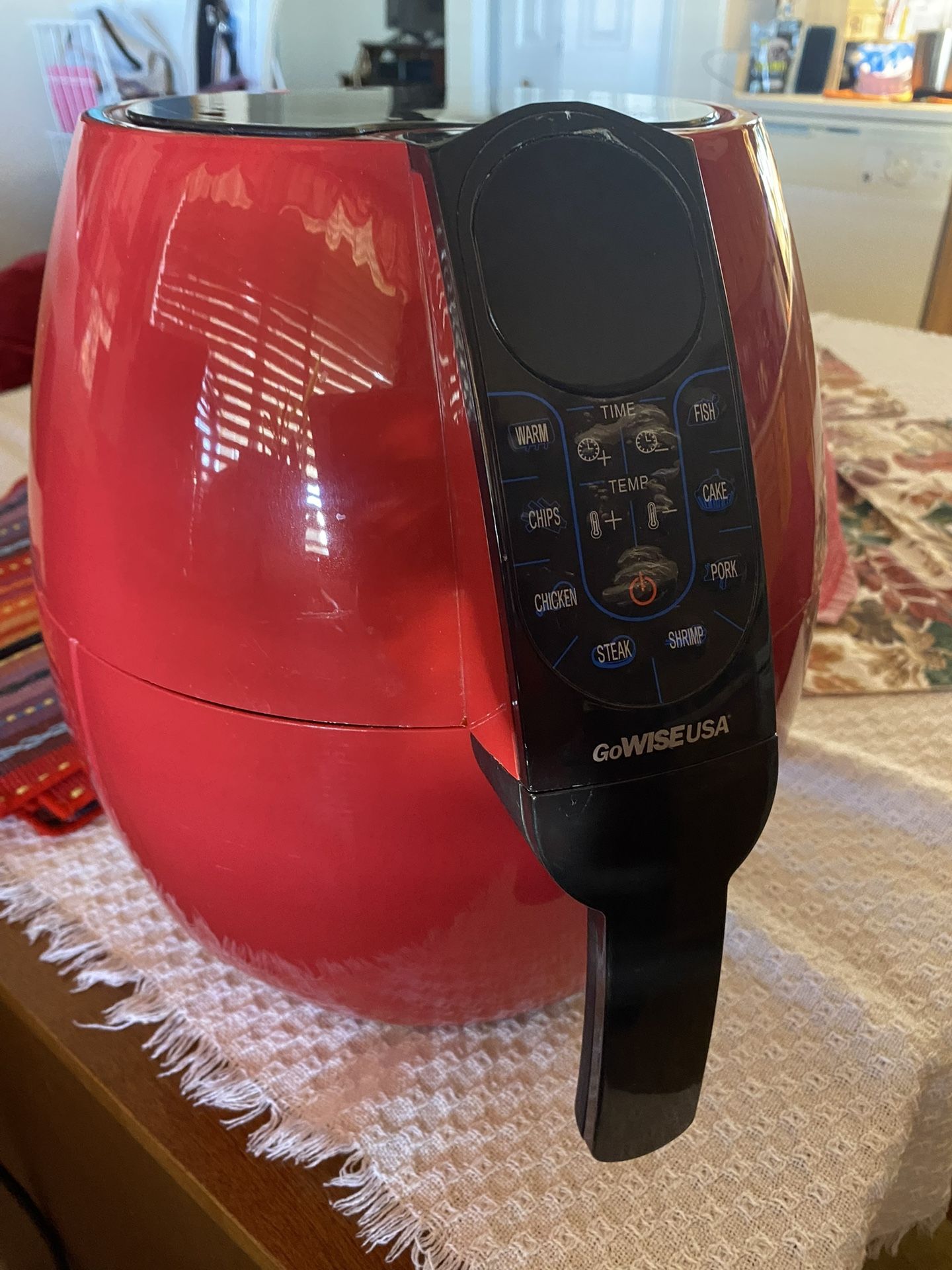Red air fryer. Is in great shape, works great. Just don’t need this anymore, did not use much Works great. Beautiful color