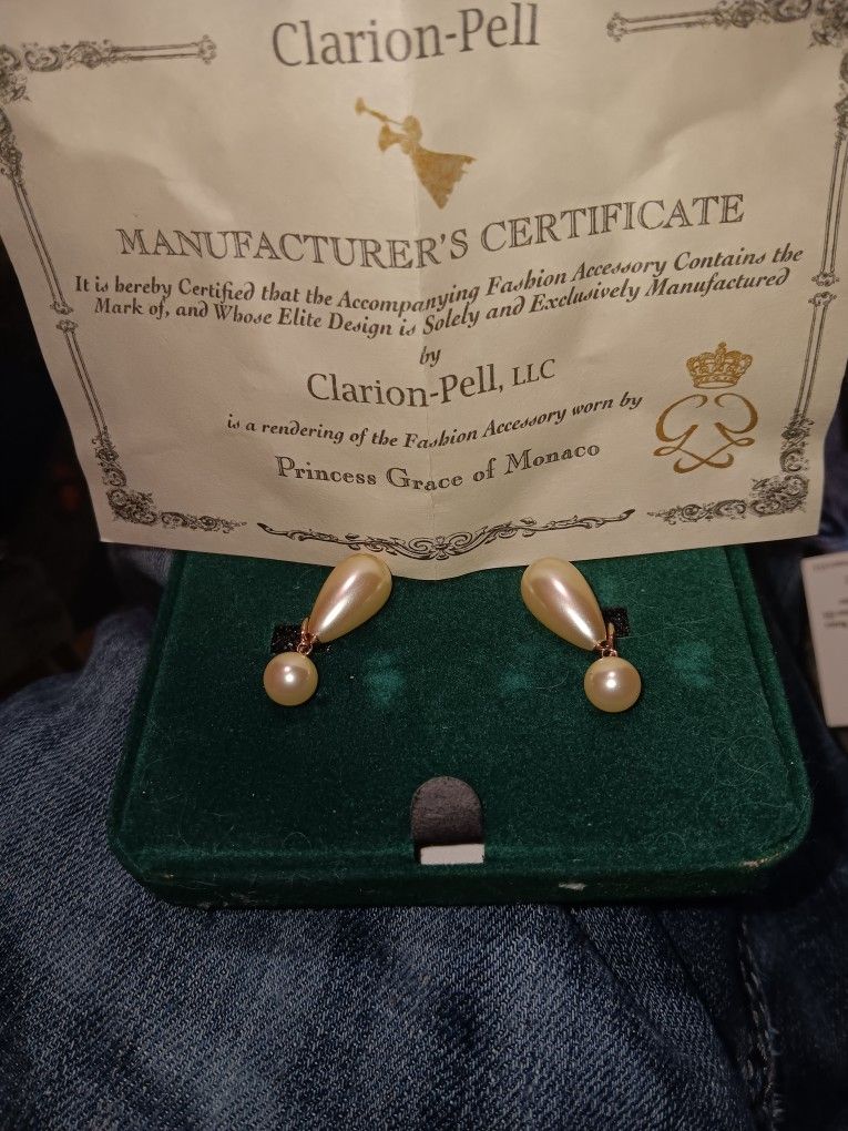 Beautifull pink teardrop pearl earings w/ manugactures certificate of Authentication. Princess Grace of Monaco collection