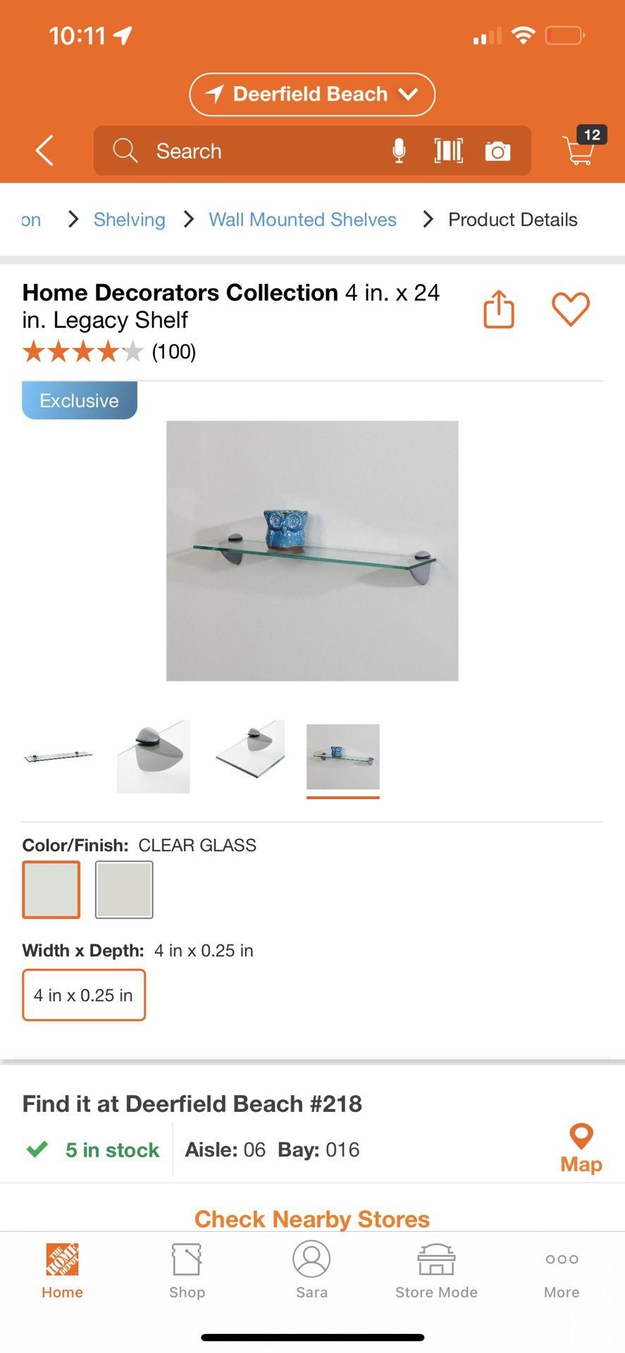 Glass 4 in. x 24 in. Shelf