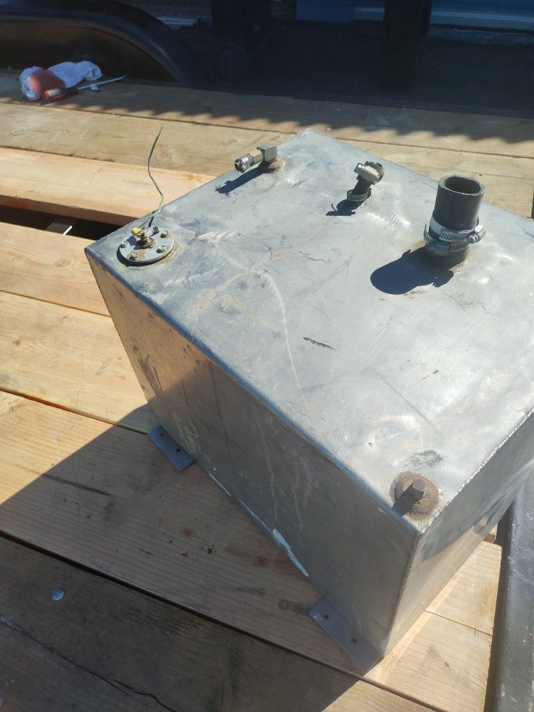 18 gallon in great condition, clean, ready to go in your boat. I apologize for not taking the dimensions but will post exact size later today. It's approximately 18" tall x 20"-24" wide and is shaped to mount be the transom. $40.00