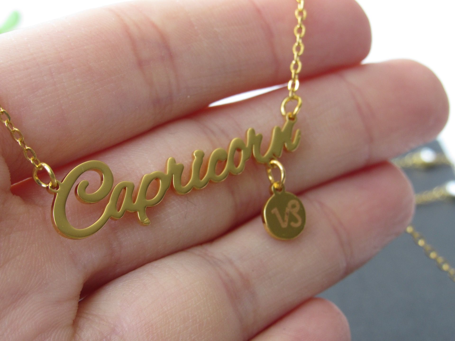 12 Constellation Zodiac Old English Letter Sign Pendant Necklace, Capricorn