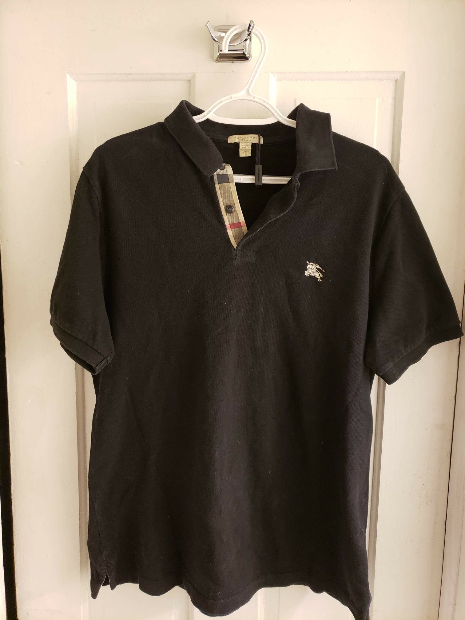 Men's Black Burberry Novacheck Polo. Sz XL but fits more like a L. Worn a handful of times but in great condition (hangtag and spare button still attached. Purchased from Nordstrom for 175$ retail I'm just asking for 75$.