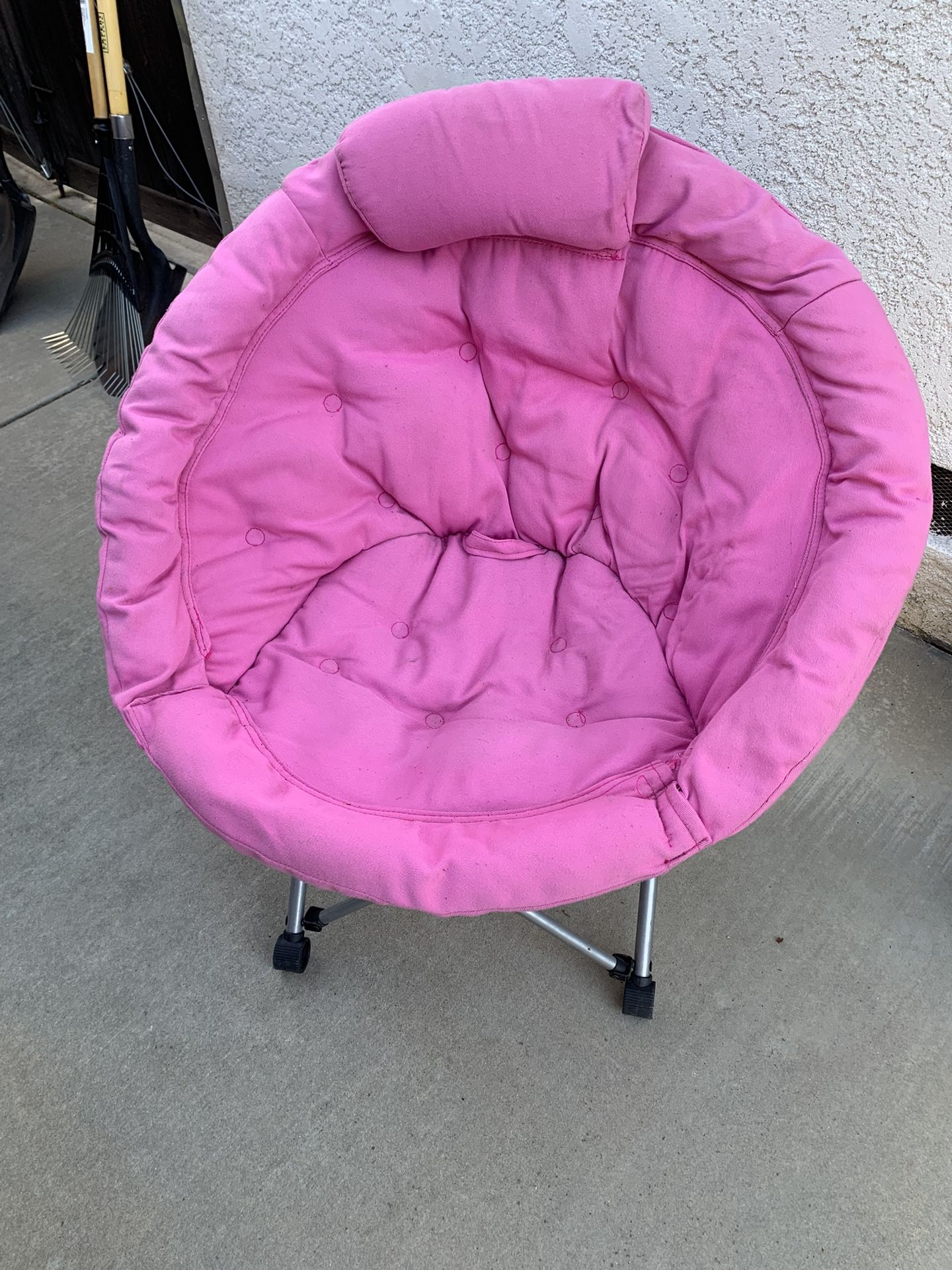 Nice Saucer Chair in pink. Clean with no stains. Cusion can be removed and washed. Comes from no smoke nor pet home.