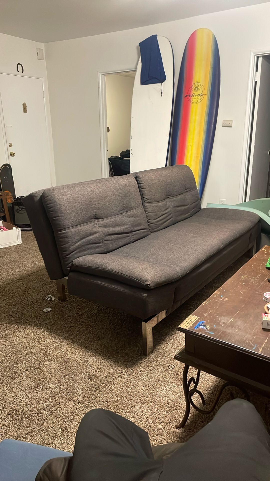 Nice multi-adjustable sofa couch sleeper . Heavy will have to pick up bring down flight of stairs. Good condition . 6ft x 4.2 ft x 3 ft tall Need gone