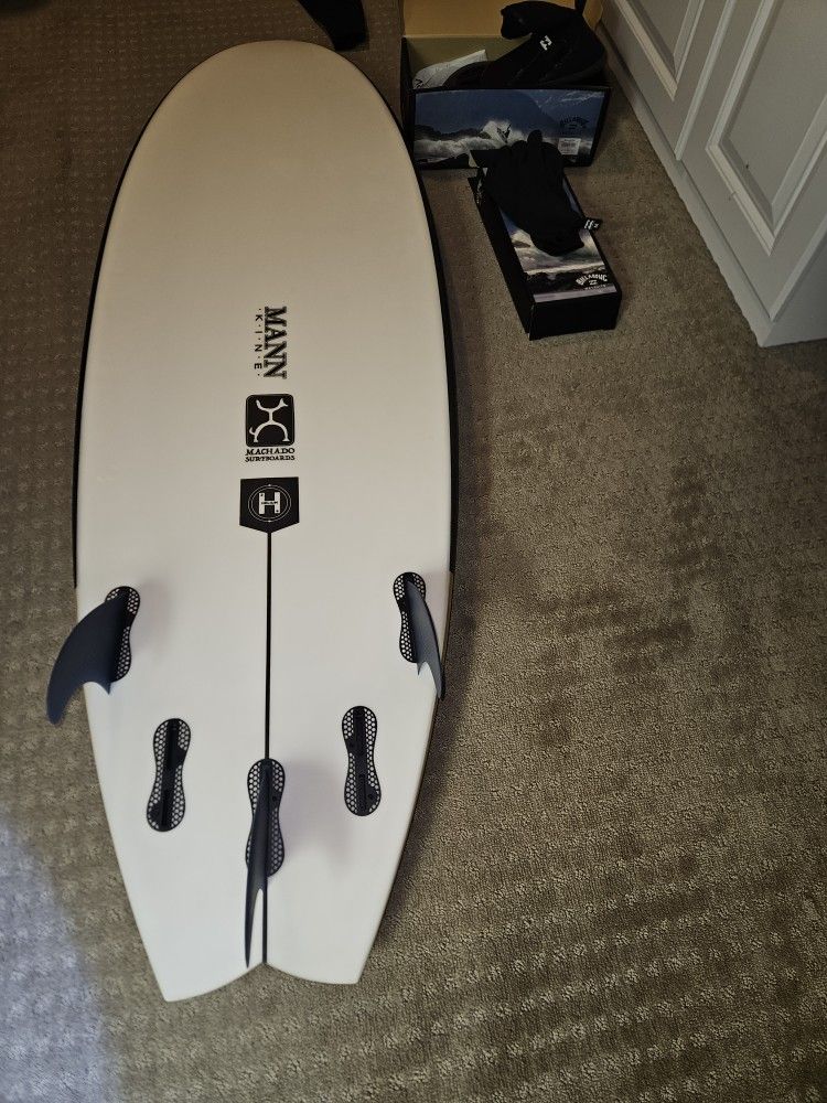 Brand new surf combo package — never used. Total retail value is $1,150–$1,300, selling for $640. Includes: • 5'6 Firewire Mashup surfboard (thruster setup) 30.5L • Stomp pad + kick pad (can remove if preferred) • Board leash • Men’s Large Billabong 3/2 full suit (premium model, tags still on) • Billabong split-toe booties (brand new) • Billabong gloves (brand new) The wetsuit, booties, and gloves have never been in the water and are still in their original packaging. The surfboard was waxed once but never ridden — it's been stored indoors since day one. No scratches, no dings, no pressure marks. Before pickup, I can fully clean and prep the board to showroom condition. If you don’t want the stomp pad or kick pad, I can remove them cleanly. Great setup for beginners to advanced surfers, or an excellent Christmas gift. Lesser Reasonable offers considered.
