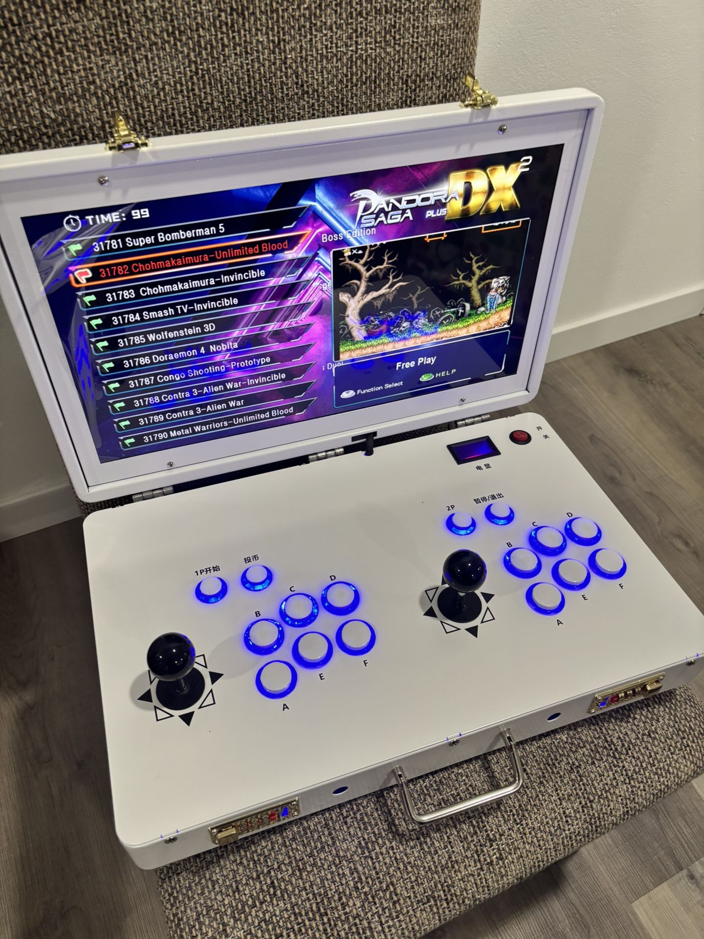💥 Bring the Arcade Home – Anywhere, Anytime Experience classic gaming with a massive built-in library of retro-style games across multiple genres and eras. ⸻ 🔥 Key Features • 🎮 Authentic Arcade Controls Dual joysticks + responsive buttons for real arcade gameplay • 👥 2-Player Mode Battle or co-op with friends & family • 🖥️ 21” HD Display Bright, vibrant screen for immersive play • 🧳 Foldable Portable Design Carry it like a case – perfect for travel or storage • ⚡ Plug & Play No setup, no downloads – just power on and play ⸻ 🎯 🎮 Massive Game Library • 🕹️ 1000s of Built-In Retro Games • 🧠 Includes classic platform, fighting, racing, puzzle & shooting games • 🎯 Covers arcade favorites, console-style classics & 3D games • 🔁 Designed for nostalgic gameplay experience across multiple generations 👉 Note: Game titles vary by unit and are inspired by classic retro gaming eras. ⸻ 🎯 Perfect For • Retro gaming lovers • Family entertainment • Kids & adults • Parties / game rooms • Unique gift idea 🎁 ⸻ 📦 Product Details • Screen: 21” • Players: 1–2 • Material: Metal + glass • Power: 110V / 220V • Connectivity: USB • Design: Foldable portable case