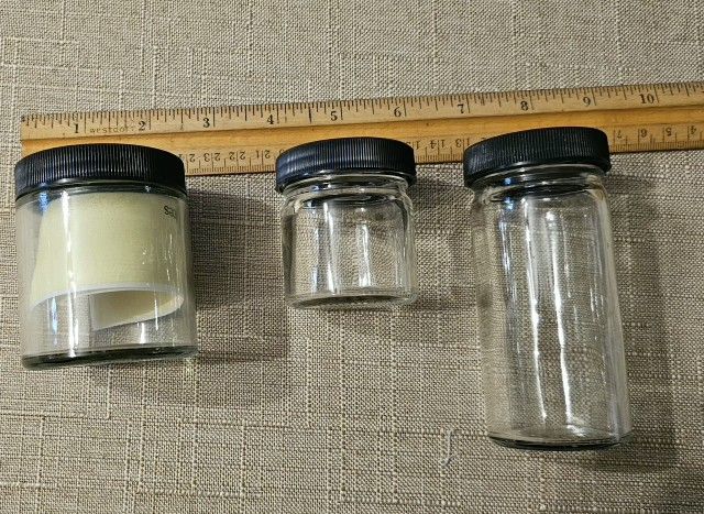 Several glass jars with lids. All brand new Small- 3. 2 1/2" x 2" diameter Medium-2. 3" x 2 1/2" diameter Tall- 17. 4 1/2" x 2 1/2" diameter Price is for all jars. Issaquah pick up Cash
