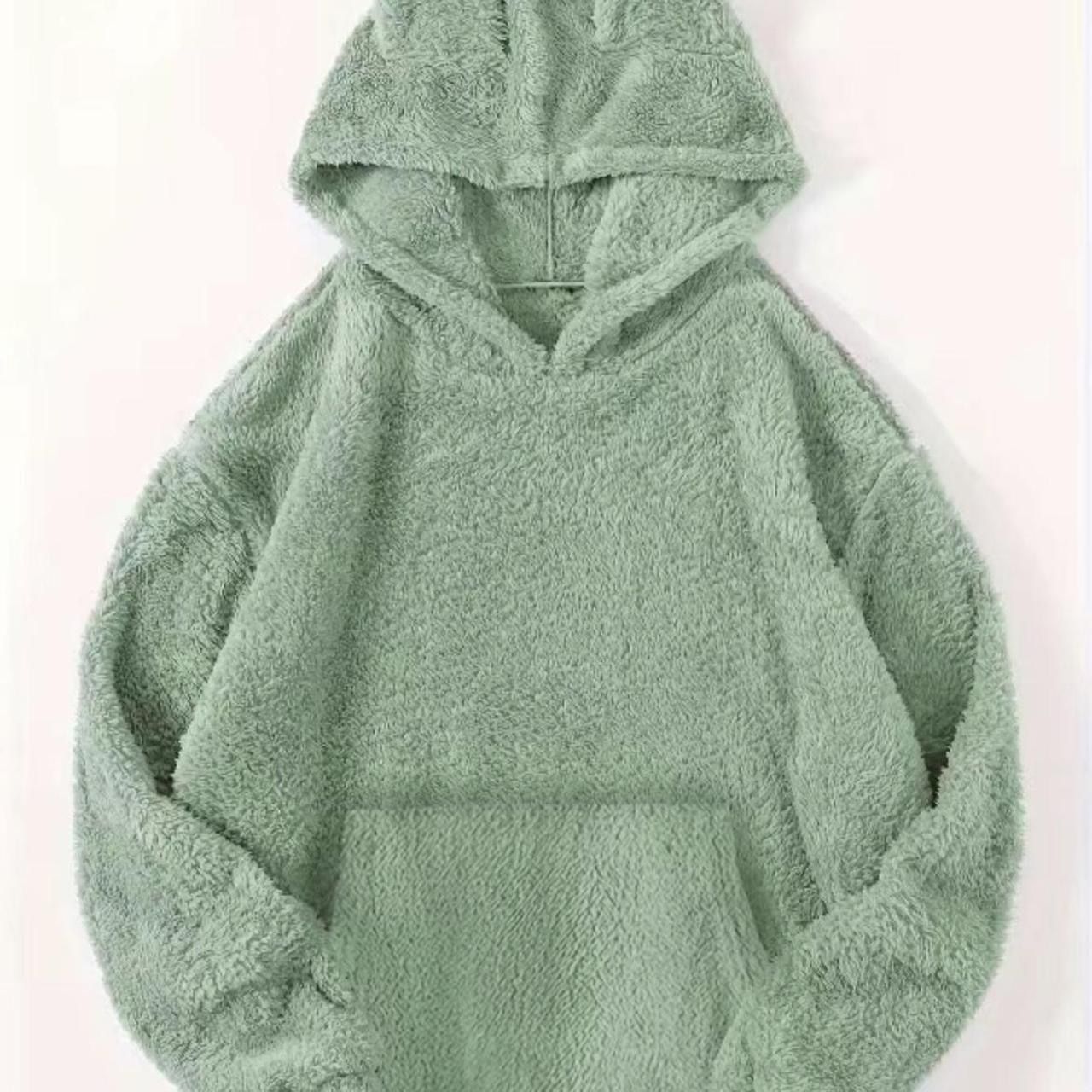 for Spring, Lady Mufti Clothes, Cute Comfortable Long Sleeve Hooded Pullover, Comfort Trendy Fuzzy Hooded Sweatshirt for Daily Wear, Clothes for Women Oversized green teddy bear hoodie #loungewear