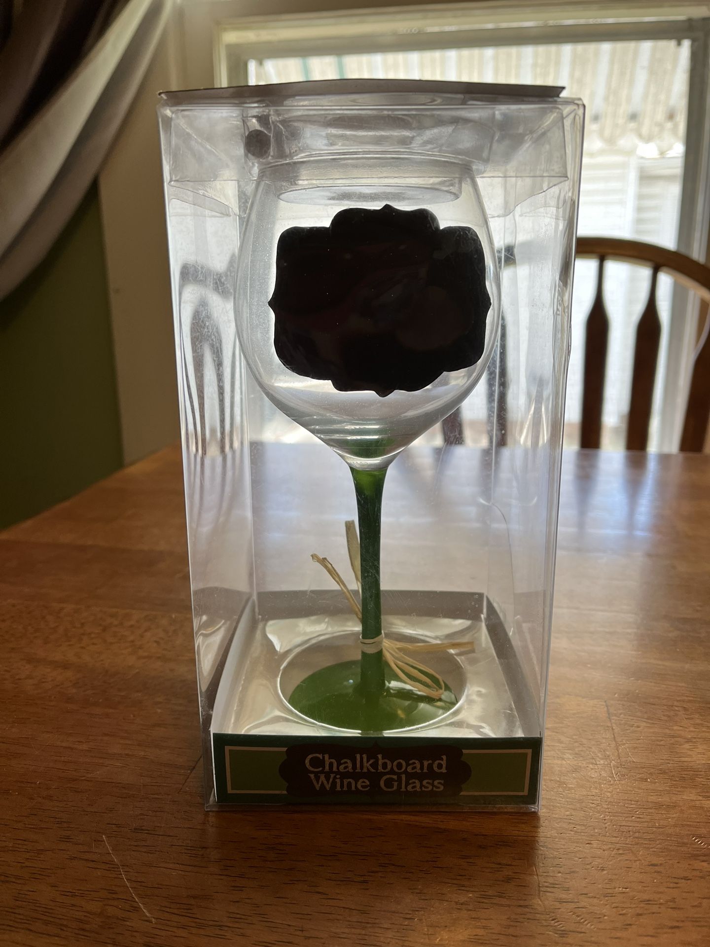 Chalkboard Wine Glass Green stem Holds 18floz Package broke on one side glass not affected