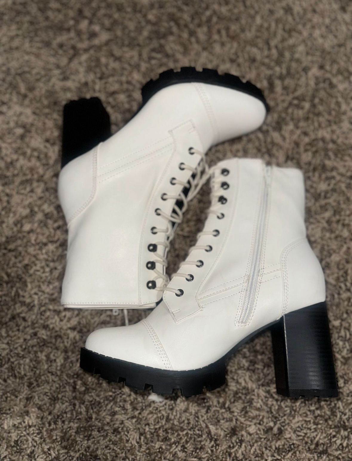 White womens size 9 combat boots Brand New never used