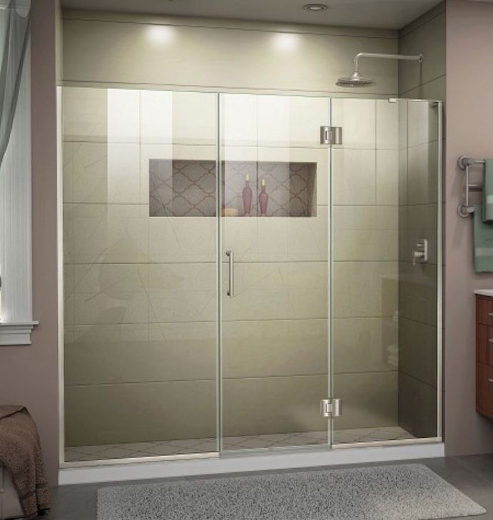 DreamLine Unidoor Hinged Shower Door in Brushed Nickel Right Wall Installation