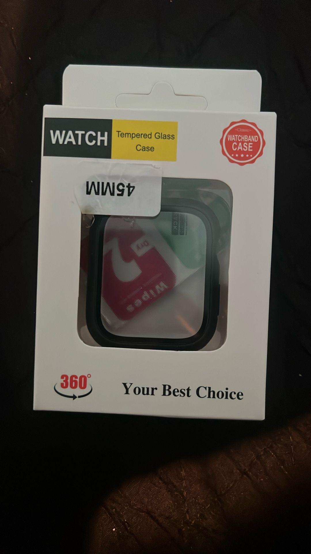 Apple Watch 45mm tempered glass case Condition: Open box, never used. Box is a little opened at the bottom but the case itself has never been taken out. Fits 45mm Apple Watch (please check your watch size). Local pickup in El Paso. Cash only, no trades.