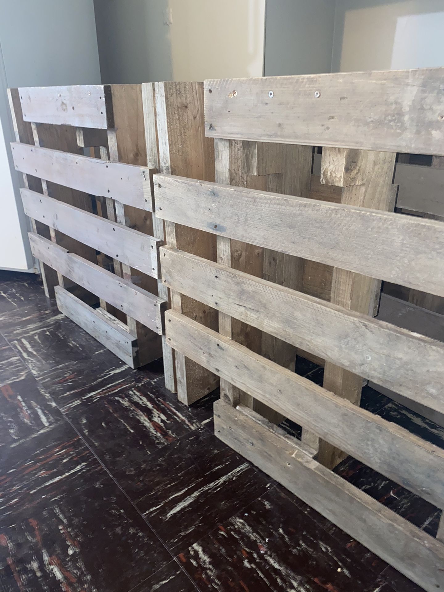 Picked these up to make a headboard have since changed my plans. They’ve been lightly sanded down and have some screws holding a few on them together. Since my drain has stopped working I won’t be able to remove these but it should be an easy fix with a drill. Completely free, you’ll just need to come haul them.