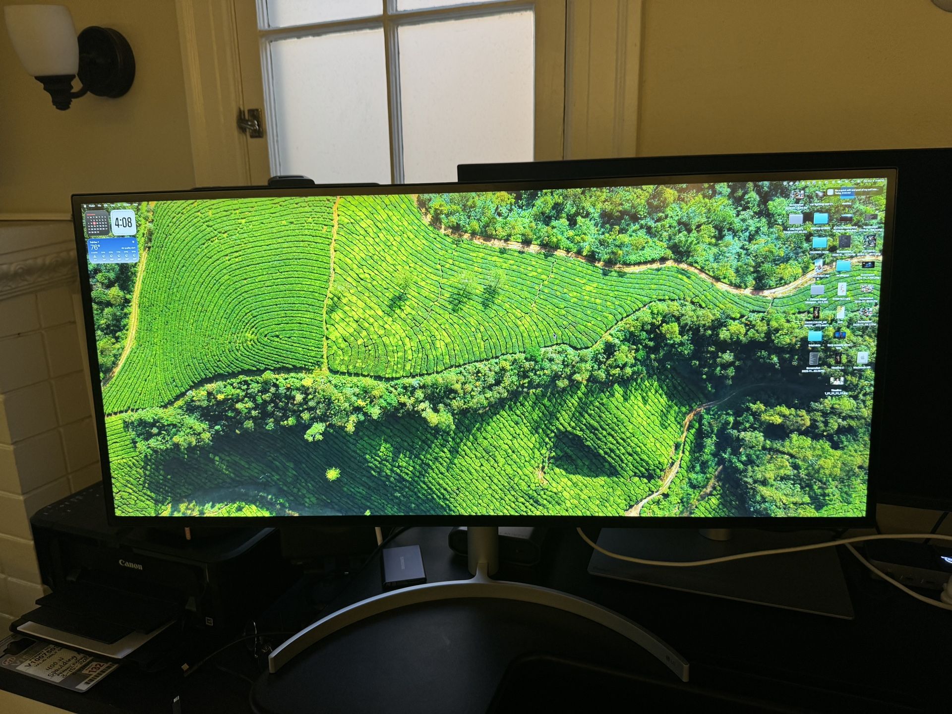 LG 34BK95U Nano IPS LED 5k monitor. Amazing for video or photo editing! Provides video and audio feed via USB-C or HDMI. USB-C charges laptop while acting as monitor so no need for a charger, less wires! Make me an offer