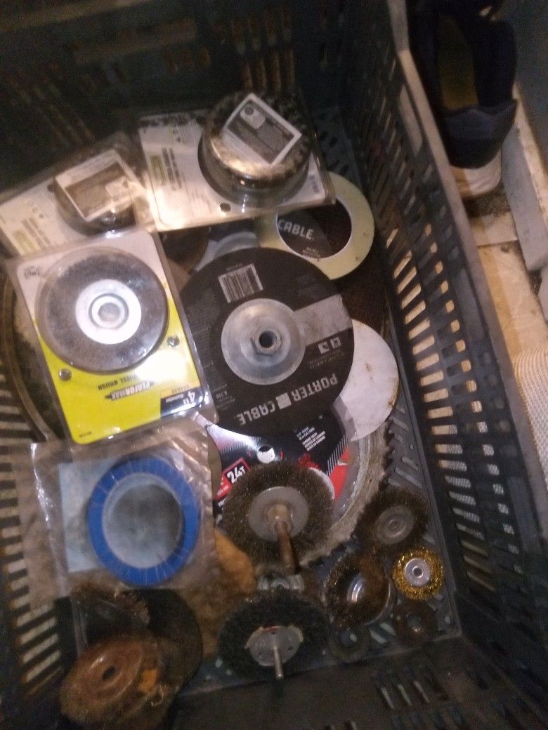 AWESOME ASSORTMENT OF GRINDER BLADES AND BRUSH BLADES PLUS MORE -MOST ARE BRAND NEW -ASKING JUST 85 OR BEST OFFER FOR EVERYTHING SHOWN