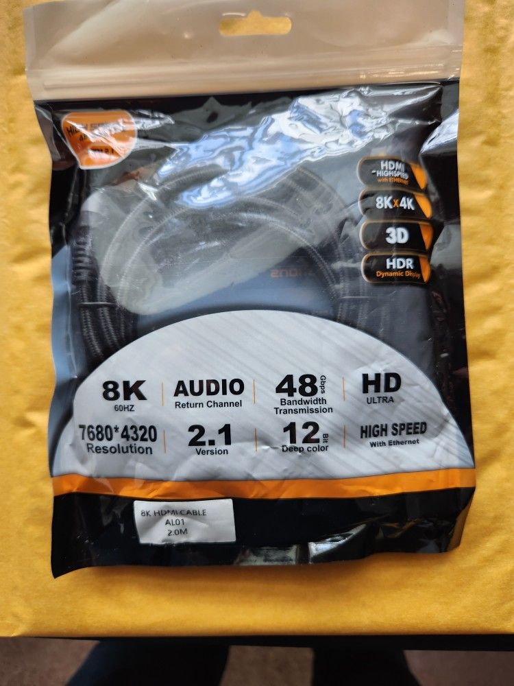 Brand New in package 8K x 4K HDMI Cable HD Ultra High Speed with ethernet HDR Dymamic Display Audio Return Channel. 2.1 version 48 Gbps Tranmission 12 Bit Deep Color 1.0M or approx 39 inches in length