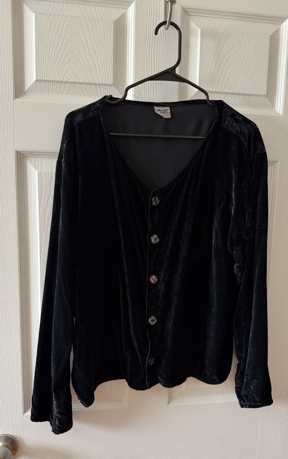 CP Shades San Francisco - Black Velvet Styled Cardigan Size Large 10/12 Womens