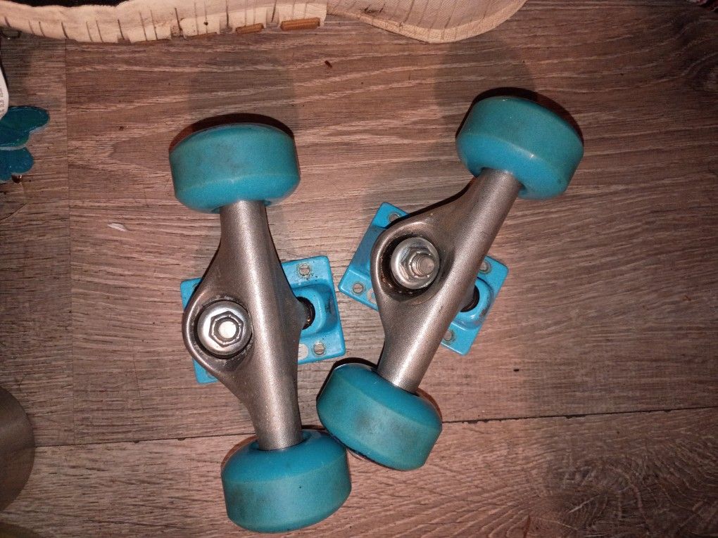 The trucks are (Bullet) Brand name With Baby blue wheels Asking 35 for set of all four Text or call if Interested (contact info removed) Must be able to pick up