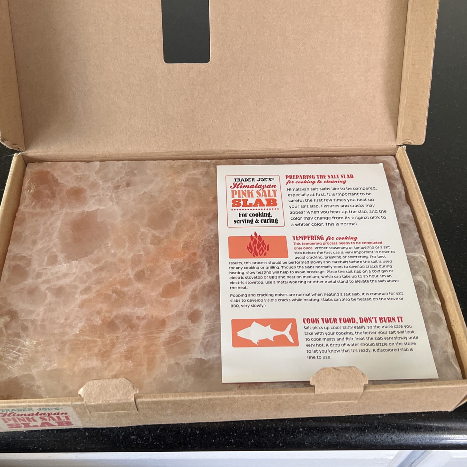 Purchased at Trader Joe’s as a gift Wonderful for cooking Pink Himalayan salt slab New and boxed Carmel Mountain ranch