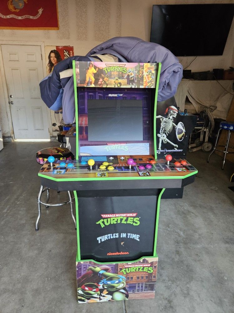 Arcade 1up TMNT - EXCELLENT WORKING CONDITION. SMALL COSMETIC DAMAGE ON KICK PLATE AS YOU CAN SEE INNTHE PICTURES, NOT TOO BAD. RARE ARCADE, HARD TO FIND $799 FIRM THANK YOU. GOING FOR UPTO $2K ON EBAY