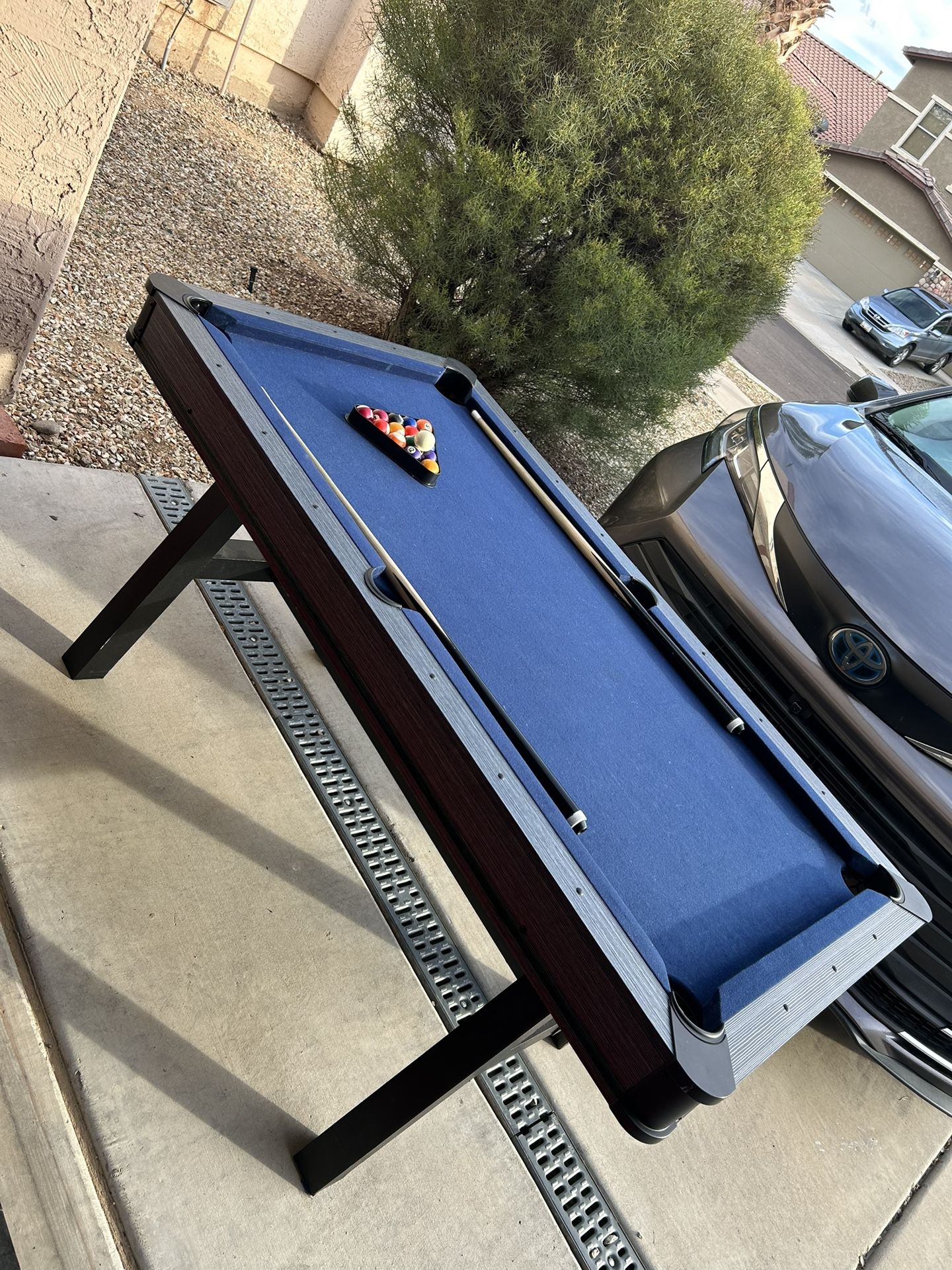 Selling my kids Barrington Pool Table /Billiard Table. Dimension in the last picture. In great shape. These are $270 + tax at walmart. Its barely used. It comes with 15 balls, chalk and 2 Sticks. I’m asking $170. It should fit your SUV or Minivan. Not that big. I can help you load it. I’m in Surprise by 303 freeway. Near Cactus Homedepot and In N Out.