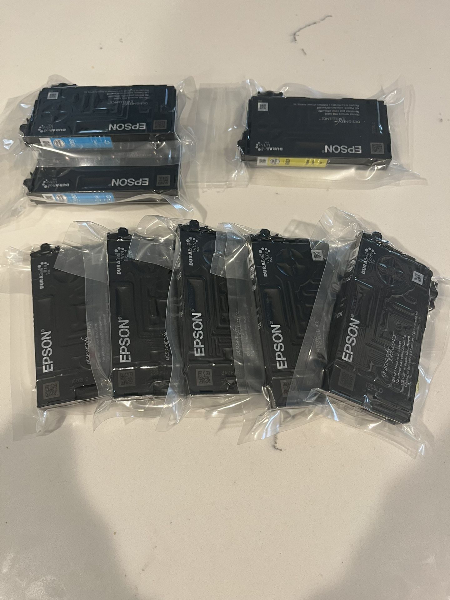 $290 worth of ink. 5 black, 2 blue, 1 yellow. All are sealed. I purchased a new printer that doesn’t use this ink.