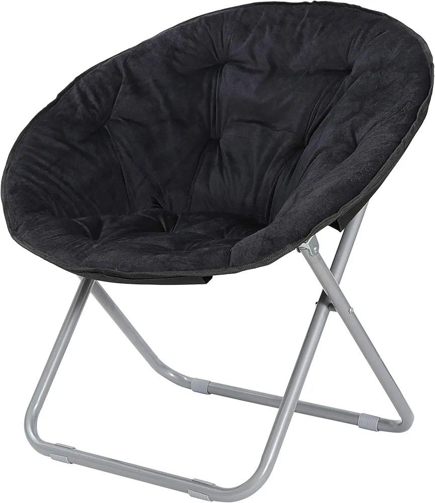 Faux Fur Folding Moon Chair with Metal Frame, Saucer Chair for Adults, Portable Chair for Bedroom, Dorm Rooms, Apartments, Lounging, Garden and Courtyard, Black