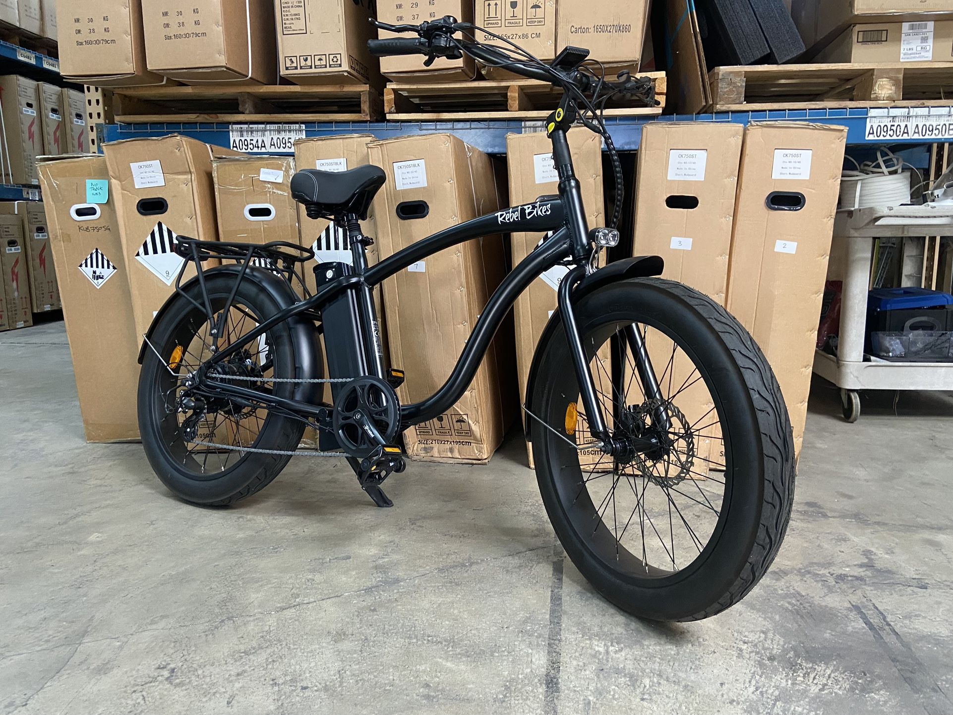 New Step over 24x3 - 52v Coastal Cruiser Electric Bike - black 2023 model equipped with 52v/750w Bafang motor with a 17AH Samsung cell battery. Javelo XD-300 hydraulic brakes. 7 speed Shimano trigger shifter Available for pickup/delivery upon request at our San Diego based warehouse in Point Loma. Please reach out and we will get back to you ASAP!