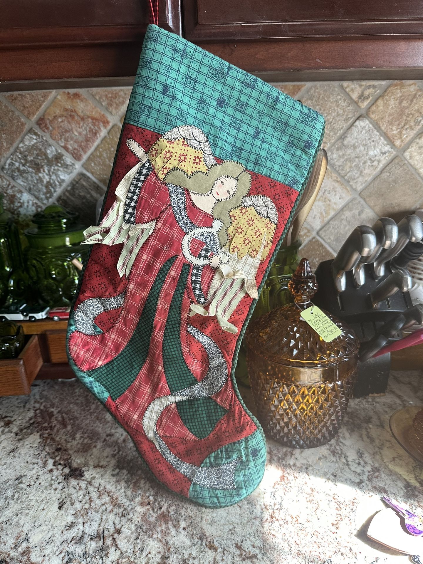 Vintage Patchwork Angel Stocking Farmhouse Country Cottage Cottagecore